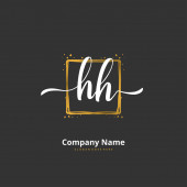 H HH Wstępne pismo i projekt logo podpisu z okręgiem. Piękny projekt ręcznie pisane logo mody, zespołu, ślubu, luksusowe logo.