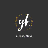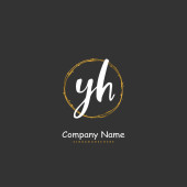 Y H YH Początkowy projekt pisma i logo podpisu z okręgiem. Piękny projekt ręcznie pisane logo mody, zespołu, ślubu, luksusowe logo.