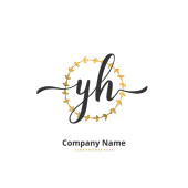 Y H YH Początkowy projekt pisma i logo podpisu z okręgiem. Piękny projekt ręcznie pisane logo mody, zespołu, ślubu, luksusowe logo.