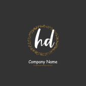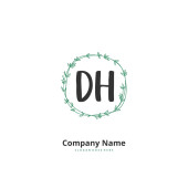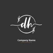 D H DH Wstępne pismo i projekt logo podpisu z okręgiem. Piękny projekt ręcznie pisane logo mody, zespołu, ślubu, luksusowe logo.