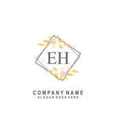 E H EH Wstępny projekt pisma i logo podpisu z okręgiem. Piękny projekt ręcznie pisane logo mody, zespołu, ślubu, luksusowe logo.