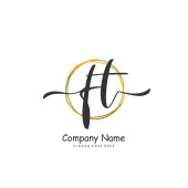 F H FH Początkowy charakter pisma i logo podpisu z okręgiem. Piękny projekt ręcznie pisane logo mody, zespołu, ślubu, luksusowe logo.