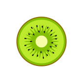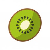 Świeży kawałek kiwi na białym tle. Ilustracja wektora płaskiej żywności. Rysunek ręcznie rysowane owoce tropikalne. Izolowana ikona. Symbol naturalnych żeńskich masek twarzy z kwasami owocowymi