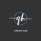 Q H QH Wstępne pismo i projekt logo podpisu z okręgiem. Piękny projekt ręcznie pisane logo mody, zespołu, ślubu, luksusowe logo.