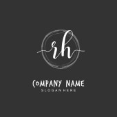 R H RH Początkowy charakter pisma i logo podpisu z okręgiem. Piękny projekt ręcznie pisane logo mody, zespołu, ślubu, luksusowe logo.