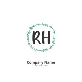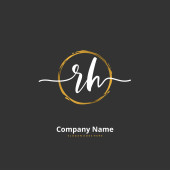 R H RH Początkowy charakter pisma i logo podpisu z okręgiem. Piękny projekt ręcznie pisane logo mody, zespołu, ślubu, luksusowe logo.