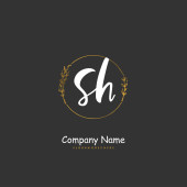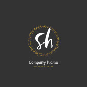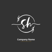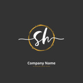 S H SH Wstępny projekt pisma ręcznego i logo podpisu z okręgiem. Piękny projekt ręcznie pisane logo mody, zespołu, ślubu, luksusowe logo.