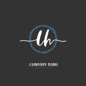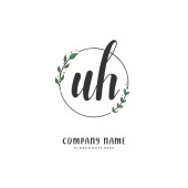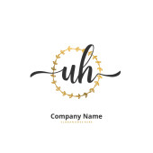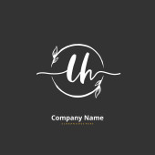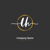 U H UH Wstępne pismo i projekt logo podpisu z okręgiem. Piękny projekt ręcznie pisane logo mody, zespołu, ślubu, luksusowe logo.