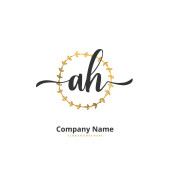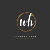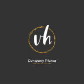 V H VH Wstępny projekt pisma i logo podpisu z okręgiem. Piękny projekt ręcznie pisane logo mody, zespołu, ślubu, luksusowe logo.