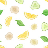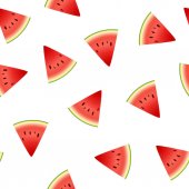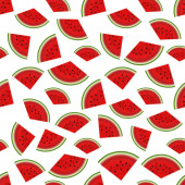 Płynny wzór wektora pokarmowego. Rysunek ręcznie rysowany arbuz na białym tle. Płaska ilustracja do tekstyliów, tapet, papieru do pakowania, kosmetyków, opakowania do masek do twarzy. Kolor owoców tropikalnych