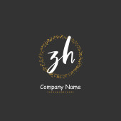 Z H ZH Początkowy charakter pisma i logo podpisu z okręgiem. Piękny projekt ręcznie pisane logo mody, zespołu, ślubu, luksusowe logo.