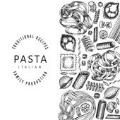 Wzór makaronu taliańskiego. Ręcznie rysowane wektorowe ilustracje żywności. Grawerowany styl. Makaron Retro różnych rodzajów tła.