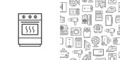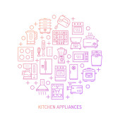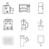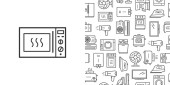 Nowoczesna kuchnia gospodarstwa domowego AGD cienka linia zestaw ikon