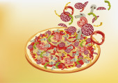 ręcznie rysowana pizza na desce do krojenia