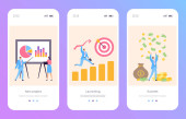 Zestaw szablonów aplikacji mobilnych dla Brand Building, Online Financial Advisor i Business Success. Interfejs użytkownika na ekranie pokładowym. Nowoczesne ilustracje wektorowe dla interfejsu użytkownika