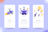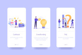 Zdjęcie "Zestaw szablonów aplikacji mobilnych dla Brand Building, Online Financial Advisor i Business Success. Interfejs użytkownika na ekranie pokładowym. Nowoczesne ilustracje wektorowe dla interfejsu użytkownika" może być wykorzystywane do celów osobistych i komercyjnych zgodnie z warunkami zakupionej licencji Royalty-free. Obraz jest dostępny do pobrania w jakości wysokiej rozdzielczości do 5760x3840.