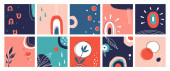 Doodle abstrakcyjne tło. Ręcznie rysowane różne abstrakcyjne kształty pociągnięcia pędzla, plamy atramentu i grunge tekstury twórczy wektor szablon