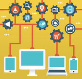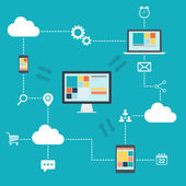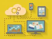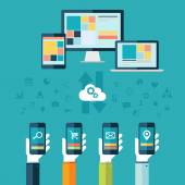 płaski ilustracji wektorowych usług chmura z urządzeń mobilnych. kopia zapasowa informacji