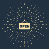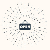 Czarna linia Wiszący znak z tekstem Otwarte drzwi ikona izolowana na białym tle. Ilustracja wektora.