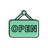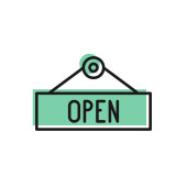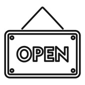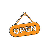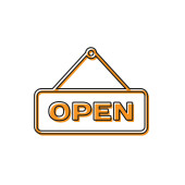Zdjęcie "Czarna linia Wiszący znak z tekstem Otwarte drzwi ikona izolowana na białym tle. Ilustracja wektora." może być wykorzystywane do celów osobistych i komercyjnych zgodnie z warunkami zakupionej licencji Royalty-free. Obraz jest dostępny do pobrania w jakości wysokiej rozdzielczości do 5760x3840.