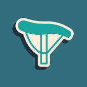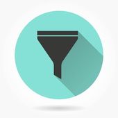Biała linia Lejek sprzedażowy ze strzałkami do marketingu i rozpoczynania działalności gospodarczej ikona odizolowana z długim cieniem. Szablon infograficzny. Zielony przycisk koła. Ilustracja wektora.