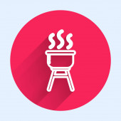 Biała linia Grill grill ikona izolowane na czarnym tle. Grillowa impreza. Kwadratowy przycisk. Ilustracja wektora.