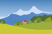 Zdjęcie "dom rustykalny, grunty rolne na łące pola poziome lato panorama wektor ilustracja" może być wykorzystywane do celów osobistych i komercyjnych zgodnie z warunkami zakupionej licencji Royalty-free. Obraz jest dostępny do pobrania w jakości wysokiej rozdzielczości do 5760x3840.