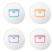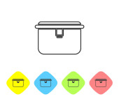 Zdjęcie "Czerwona linia Lunch box ikona izolowane na białym tle. Ustaw ikony kolorów. Ilustracja wektora." może być wykorzystywane do celów osobistych i komercyjnych zgodnie z warunkami zakupionej licencji Royalty-free. Obraz jest dostępny do pobrania w jakości wysokiej rozdzielczości do 5760x3840.