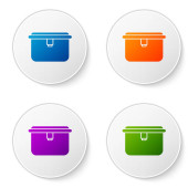 Czerwona linia Lunch box ikona izolowane na białym tle. Ustaw ikony kolorów. Ilustracja wektora.