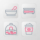 Kolor linii Gotowanie ikona garnek izolowane na białym tle. Gotować lub dusić symbol żywności. Ustaw ikony w przyciskach koła. Ilustracja wektora.