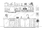 Meble kuchenne. Ilustracja wektora w stylu szkicowym.