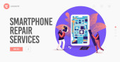 Zdjęcie "Koncepcja naprawy smartfona strona lądowania." może być wykorzystywane do celów osobistych i komercyjnych zgodnie z warunkami zakupionej licencji Royalty-free. Obraz jest dostępny do pobrania w jakości wysokiej rozdzielczości do 5760x3840.