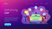Zdjęcie "Autonomiczna strona docelowa koncepcji samochodu." może być wykorzystywane do celów osobistych i komercyjnych zgodnie z warunkami zakupionej licencji Royalty-free. Obraz jest dostępny do pobrania w jakości wysokiej rozdzielczości do 5760x3840.