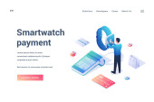 Zdjęcie "Strona docelowa koncepcji płatności Smartwatch." może być wykorzystywane do celów osobistych i komercyjnych zgodnie z warunkami zakupionej licencji Royalty-free. Obraz jest dostępny do pobrania w jakości wysokiej rozdzielczości do 5760x3840.