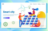 Stacje doładowania Eco na stronie docelowej smart city concept.