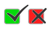 Zaznacz zieloną wskazówkę i czerwony krzyż zatwierdzonych i odrzuconych symboli okręgu TAK i przycisk NIE do głosowania, decyzji, web. Ikona ilustracji wektora