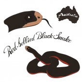 Czerwony brzuch Czarny Wąż głowa sylwetka ikona okrągły shabby emblemat projekt stary styl retro. Czerwony brzuch znaczek pocztowy logo na papierze rzemieślniczym vintage grunge znak. Jadowity wąż.