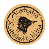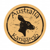 Australijska sylwetka kangura wektor ikona okrągły zniszczone emblemat projektu, stary styl retro. Kangur w pełnym logo wzrostu znaczek pocztowy na papierze rzemieślniczym. Skoki zwierząt kształt vintage grunge znak.