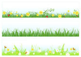 Zestaw banerów poziomych z polnymi ziołami i stokrotkami na gradientowym tle. Wektor