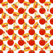 Czerwone pomidory. Sałatka warzywna. Nowoczesny żółty bezszwowy wzór do tworzenia wzorów wydruków, wizytówek, plakatów, ulotek, stron internetowych, banerów, identyfikacji korporacyjnej.