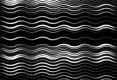 Płynna faktura linii poziomych, wzór wektorowy fal cyfrowych, białe paski na czarnym tle, wzór tekstury