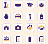 Towary dla zwierząt kolorowych ikon wektorowych dla projektowania interfejsu użytkownika