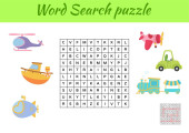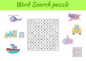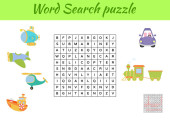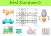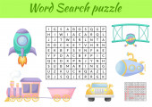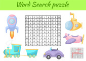 Puzzle wyszukiwania słów. Krzyżówka z zabawkami. Zabawki w twoim pokoju. Gra edukacyjna dla dzieci. Mini-gra dla dzieci. Ilustracja wektora.