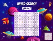 Puzzle wyszukiwania słów. Krzyżówka o geometrycznych kształtach. Wektor gra edukacyjna dla dzieci. Mini-gra dla dzieci.