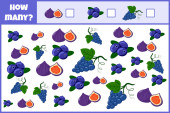 Edukacyjna gra matematyczna. Policz jagody. Policz ile jagód. Liczenie gry dla dzieci.