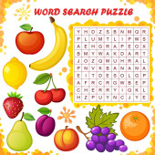 Puzzle wyszukiwania słów. Krzyżówka z jagodami. Świeże jagody. Wektor gra edukacyjna dla dzieci. Mini-gra dla dzieci. Krzyżówka dla dzieci.