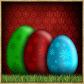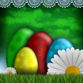 szczęśliwy kartkę z życzeniami Wielkanocnej - kolorowe jaja i kwiaty
