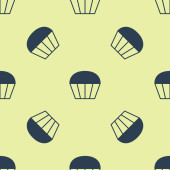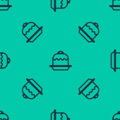 Niebieska linia Ikona kasku ochronnego Worker odizolowany bezszwowy wzór na żółtym tle. Ilustracja wektora.