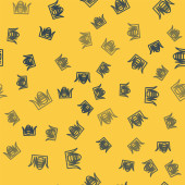 Niebieska linia Wzrost cen ropy ikona odizolowany bezszwowy wzór na żółtym tle. Koncepcja kryzysu w przemyśle naftowym. Ilustracja wektora.