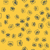 Niebieska linia Szukaj na ekranie komputera ikona odizolowany bezszwowy wzór na żółtym tle. Ekran i szkło powiększające. Ilustracja wektora.